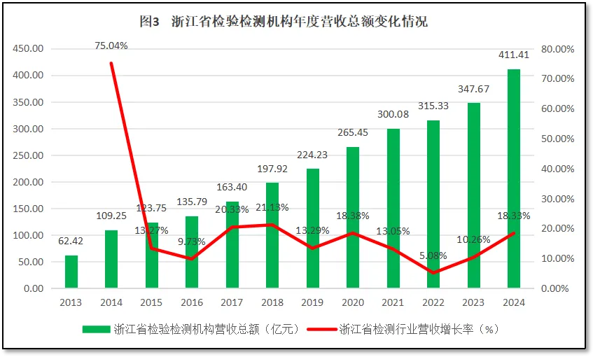 过去12年浙江省检验检测机构年度营收总额的变化如图3所示。
